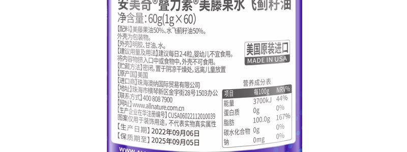 商品名称:安美奇 ®叠力素®美藤果水飞蓟籽油 60粒/瓶