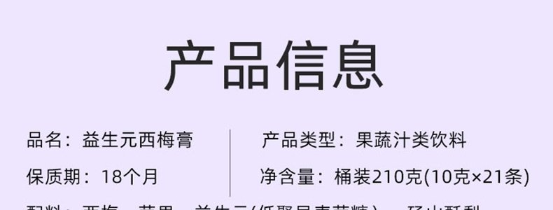 商品名称:喜善花房 益生元西梅膏 210g*2桶