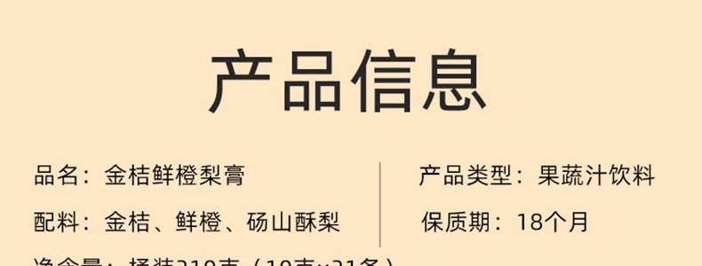 商品名称:喜善花房 金桔鲜橙梨膏 210g*2桶
