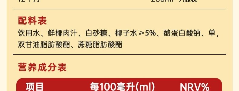 商品名称:椰语堂 椰子水椰汁 280ml*9瓶
