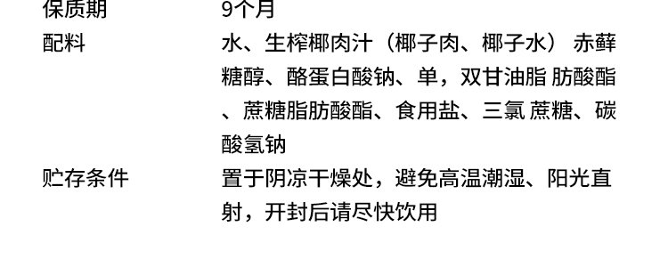 商品名称:椰子知道 0糖鲜椰汁 200ml*9盒