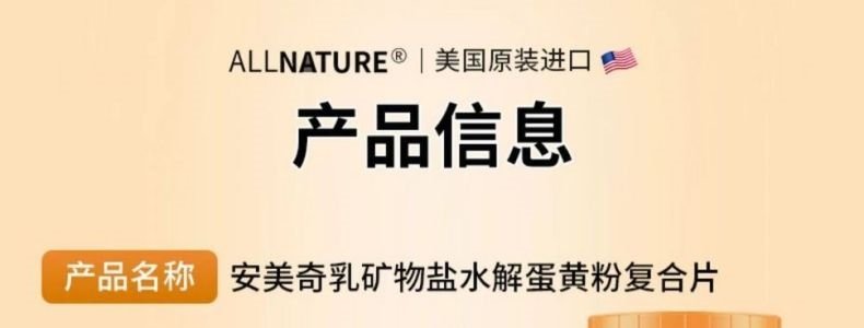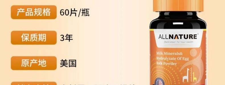 商品名称:安美奇 ®乳矿物盐水解蛋黄粉复合片 60片/瓶