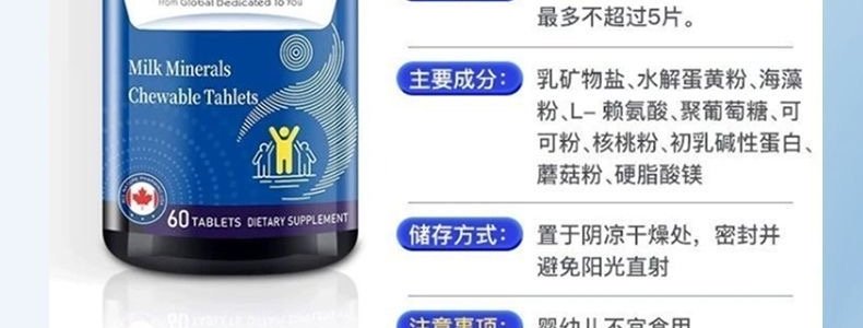 商品名称:安美奇 ®叠力素智高®乳矿物盐咀嚼片 60片/瓶