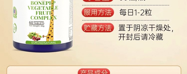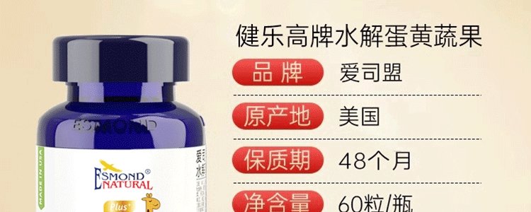 商品名称:爱司盟 健乐高牌水解蛋黄蔬果 60片/瓶