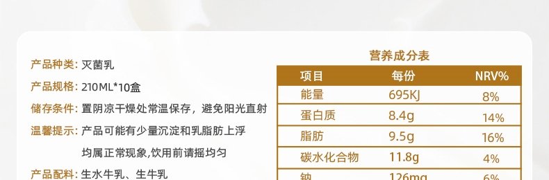 商品名称:左江 a2β-酪蛋白水牛奶 210ml*10盒