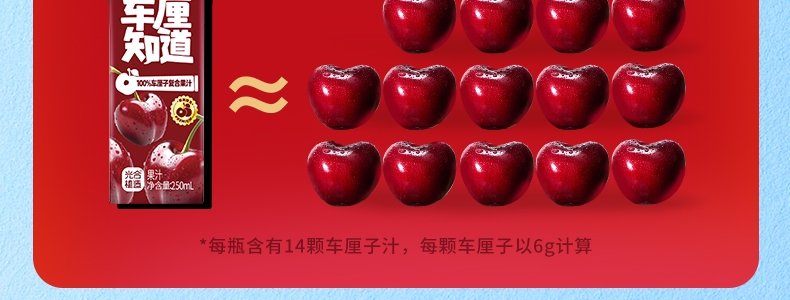 商品名称:椰子知道 车厘知道100% 车厘子复合果汁 250ml*10盒