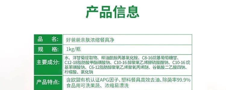 商品名称:立白 好爸爸亲肤浓缩餐具净洗洁精 1kg*2瓶
