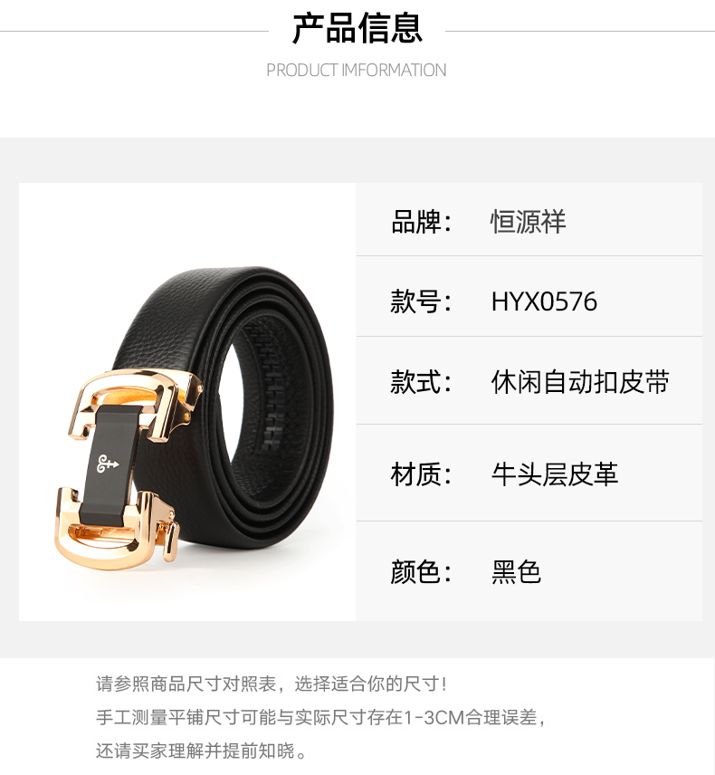 商品名称:恒源祥(HYX0576)休闲自动扣皮带 长度:110-130cm