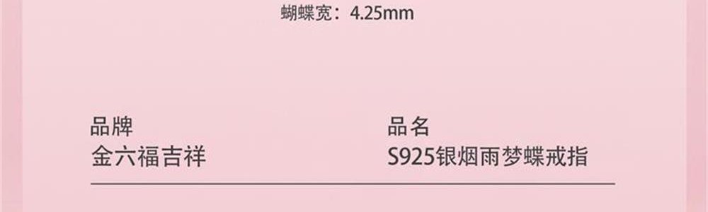 商品名称:金六福吉祥 S925银烟雨梦蝶戒指 JZYS21102