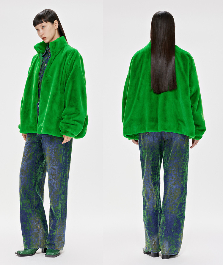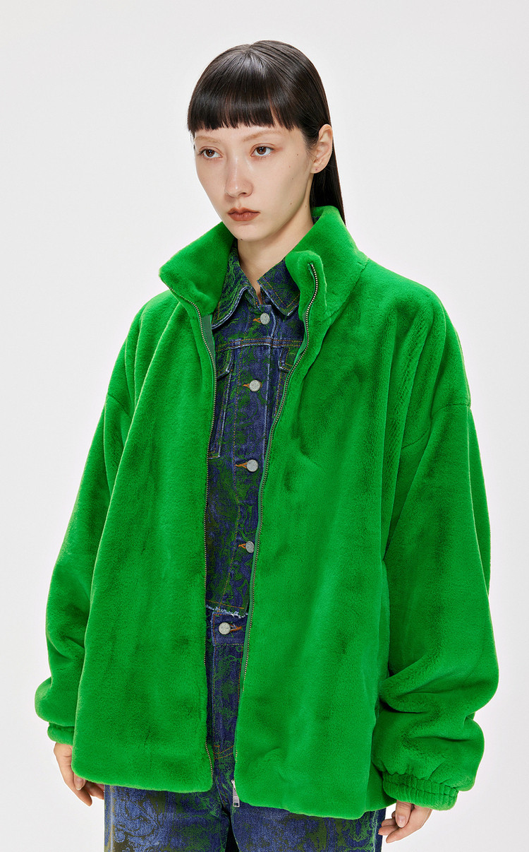 冬仿皮草宽松立领H型外套女 584715