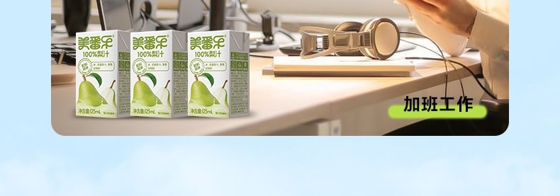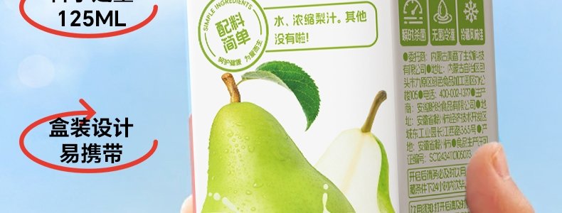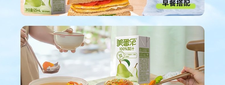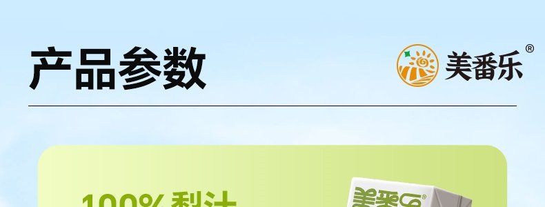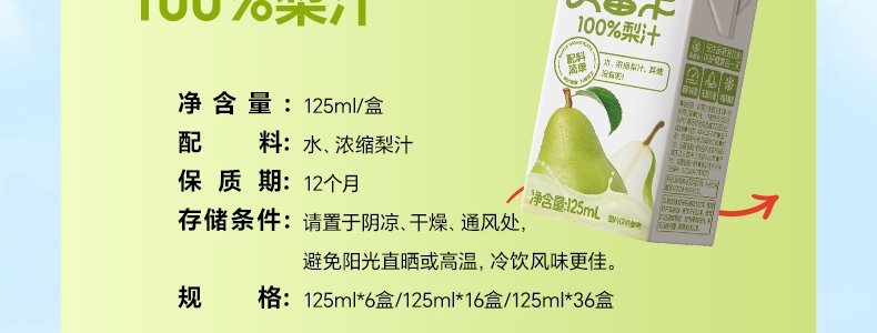 商品名称:美番乐 100%果汁饮料梨汁 125ml*16盒