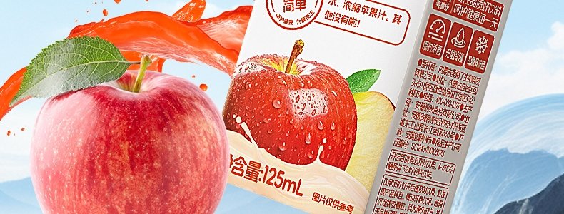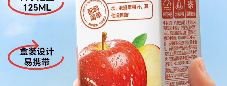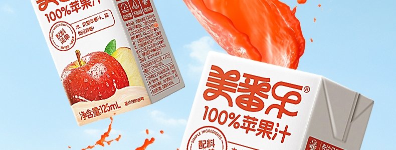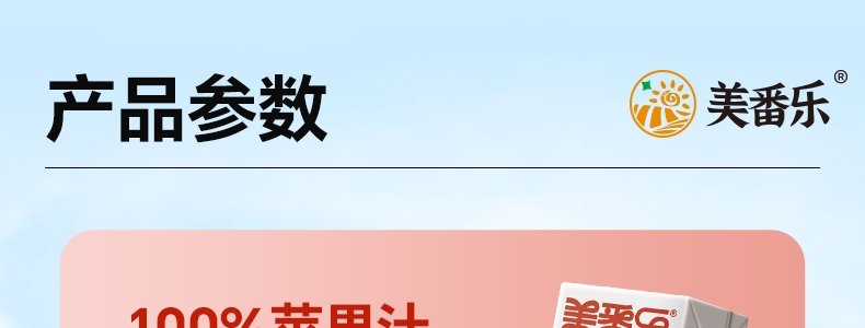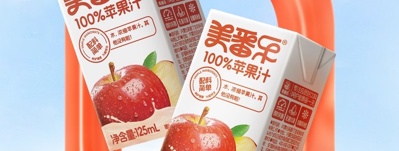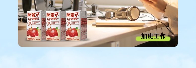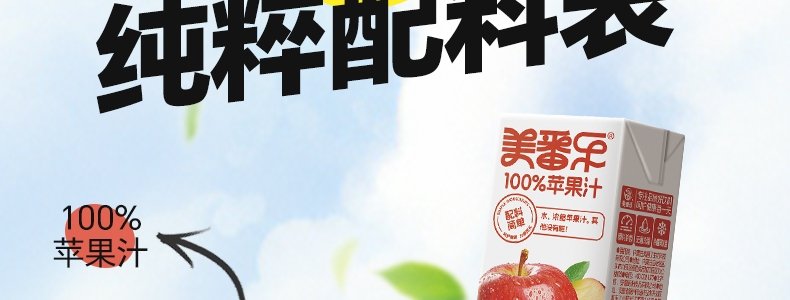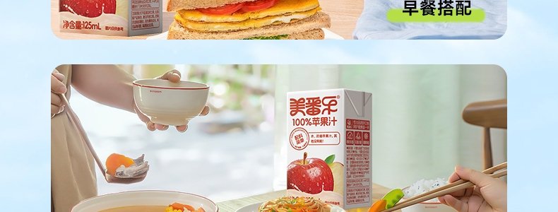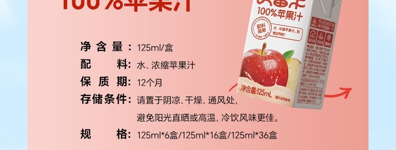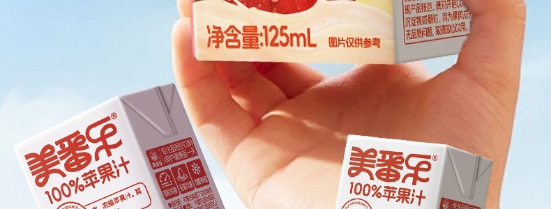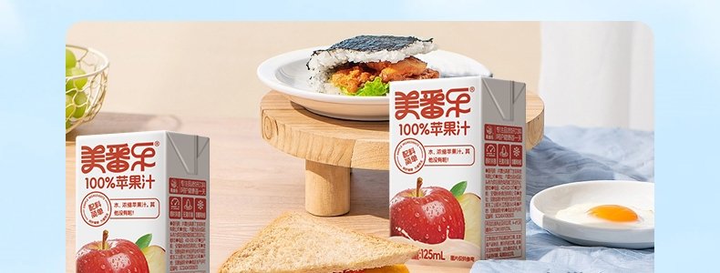 商品名称:美番乐 100%果汁饮料苹果汁 125ml*16盒