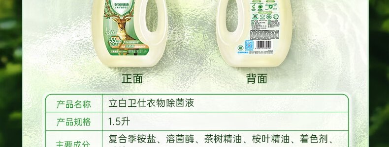 商品名称:立白 卫仕除菌液1.5L*2瓶+卫仕除菌液260ml*2瓶+卫仕洗衣液100g*2袋