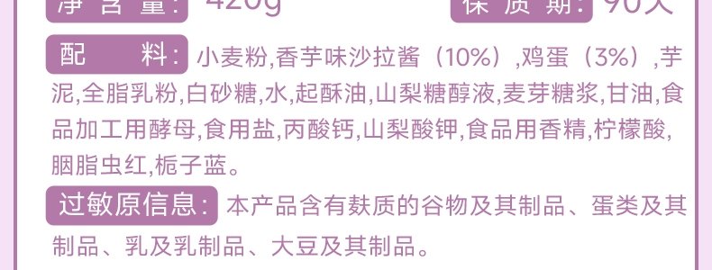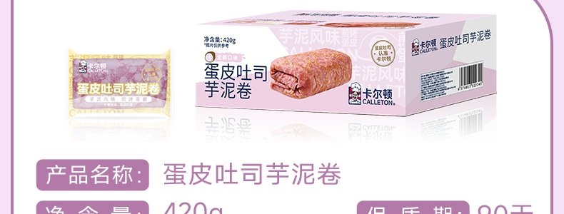 商品名称:卡尔顿(Calleton)蛋皮吐司芋泥卷 420g