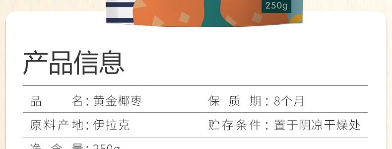 商品名称:古力巴戈 黄金椰枣 250克*4袋