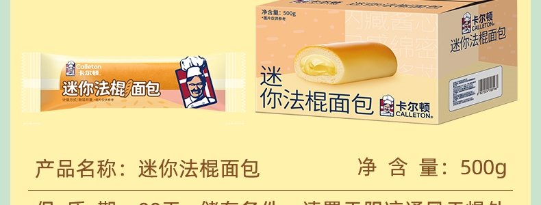 商品名称:卡尔顿(Calleton) 迷你法棍夹心面包 500g