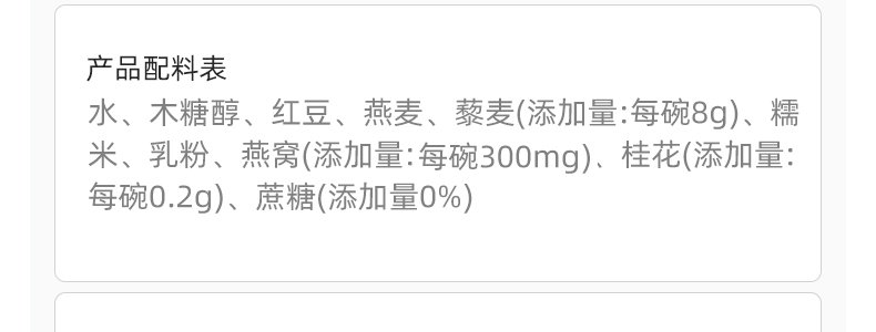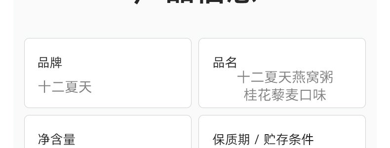 商品名称:十二夏天 燕窝粥桂花藜麦口味 252g*6碗