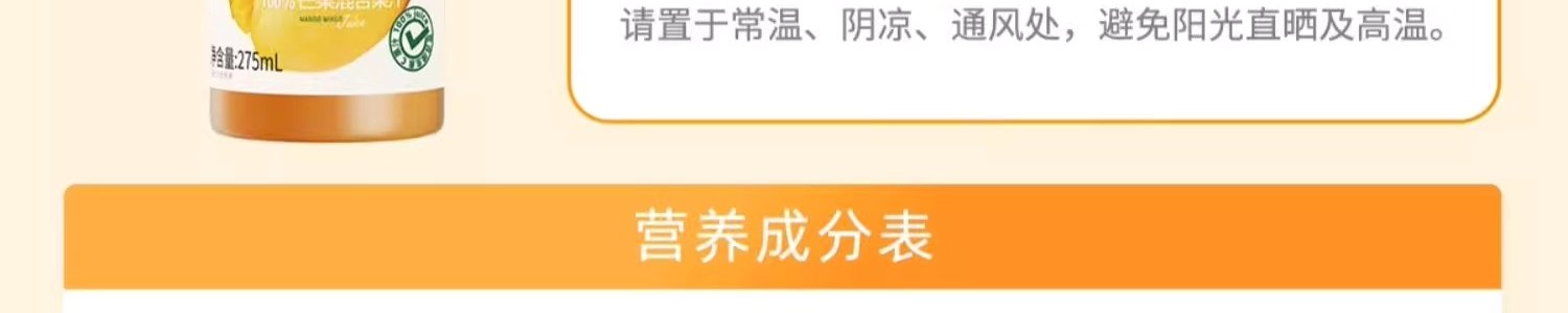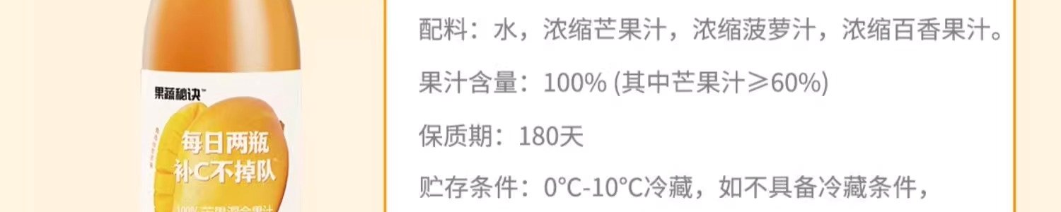 商品名称:乐源 果蔬秘诀100%芒果混合果汁 275ml*8瓶