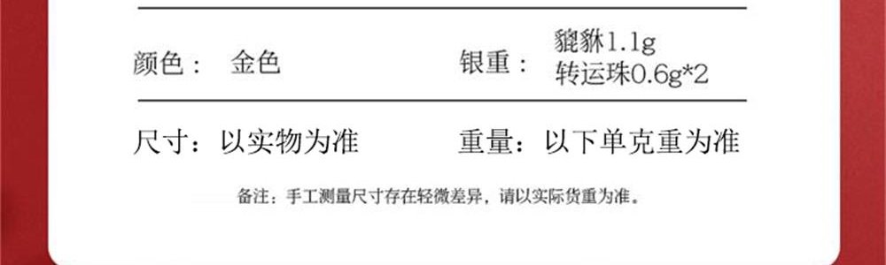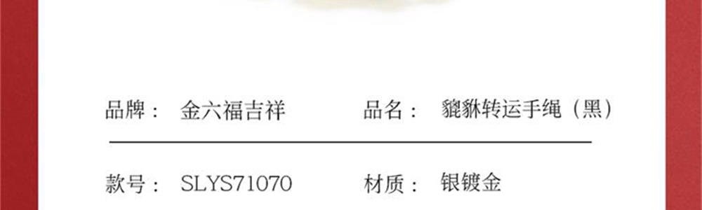 商品名称:金六福吉祥貔貅转运手绳(黑)SLYS71070