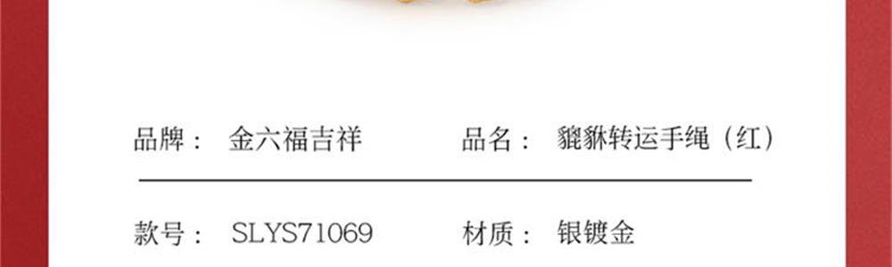商品名称:金六福吉祥貔貅转运手绳(红)SLYS71069