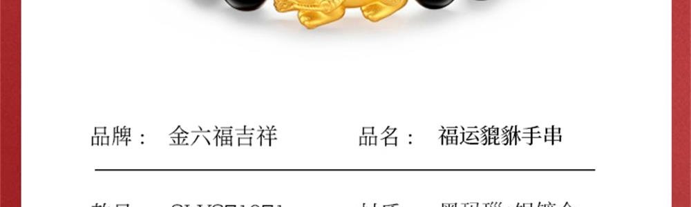 商品名称:金六福吉祥 福运貔貅手串 SLYS71071