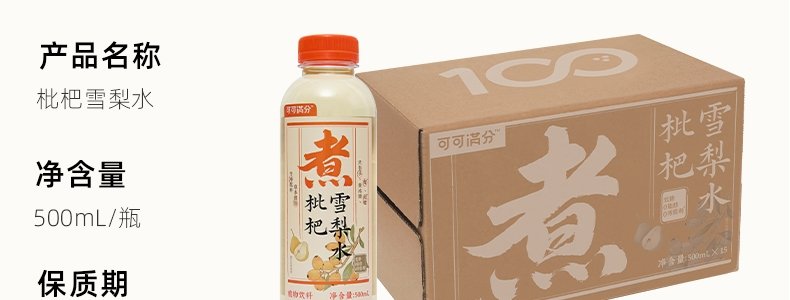 商品名称:可可满分 枇杷雪梨水 500ml*5瓶
