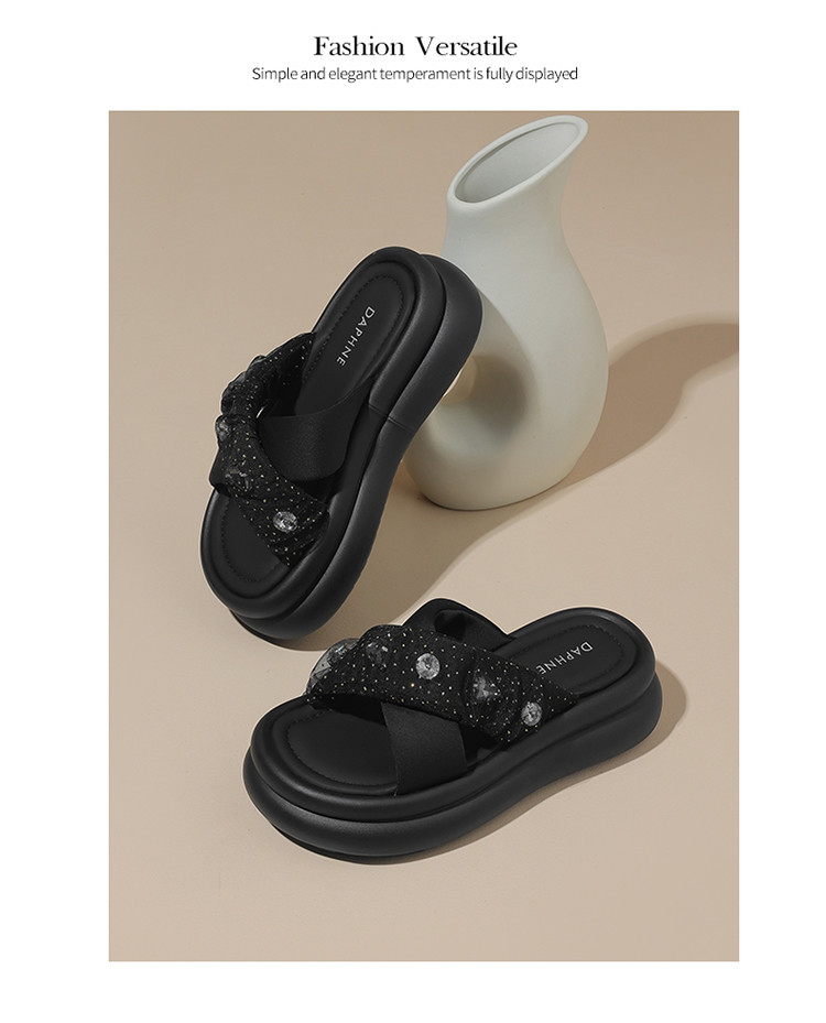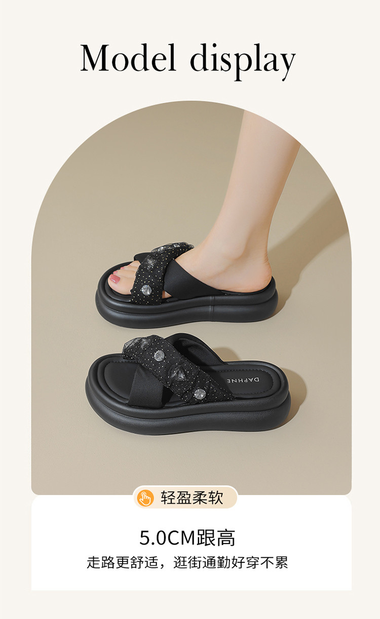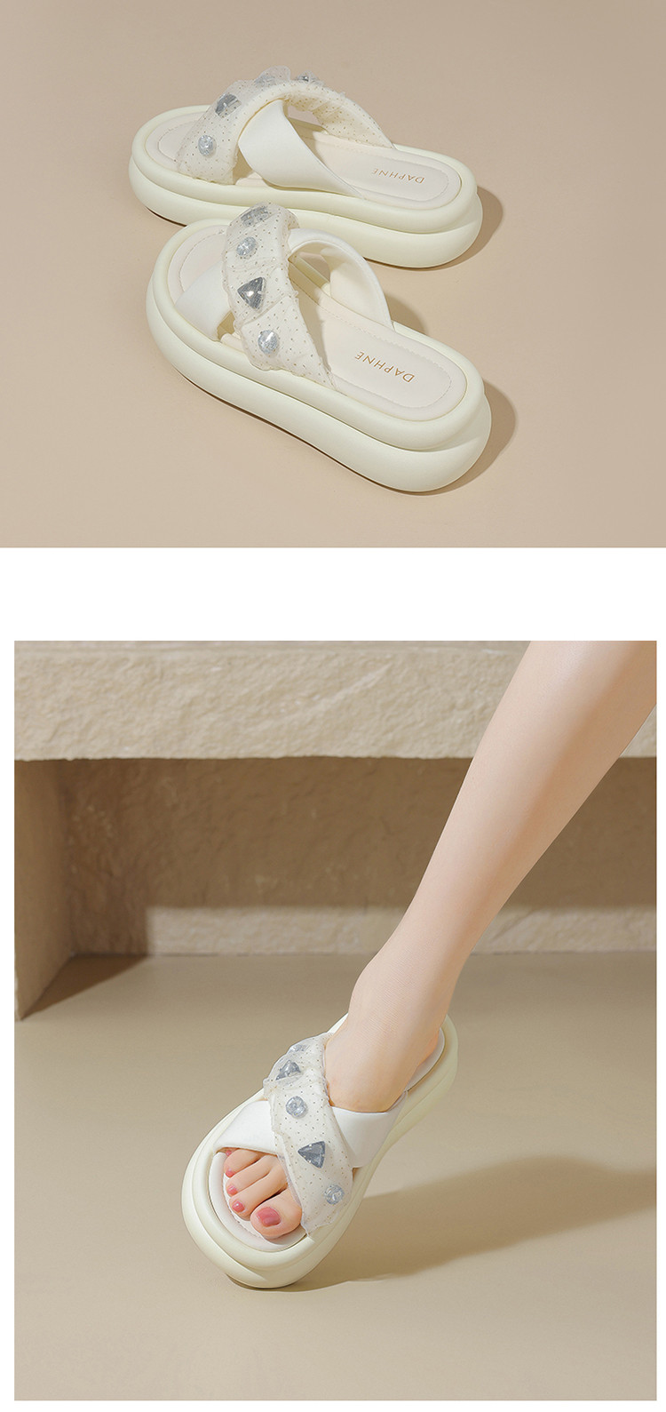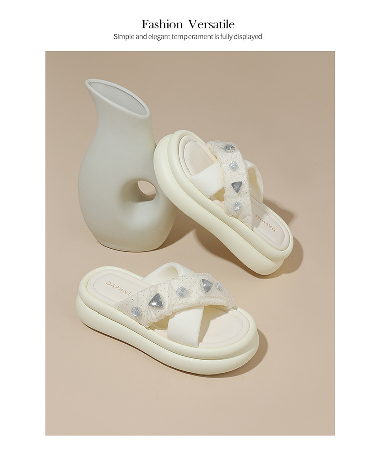 【畅销尖货】夏季外穿女拖鞋水钻网纱厚底拖鞋时尚休闲沙滩拖鞋 589271