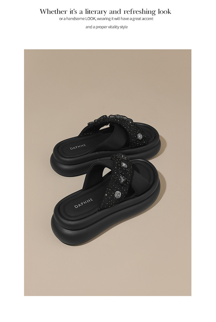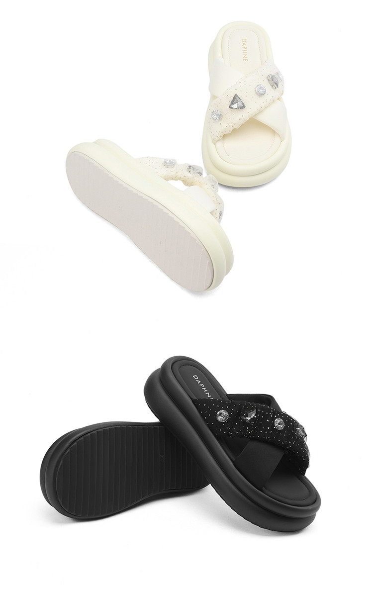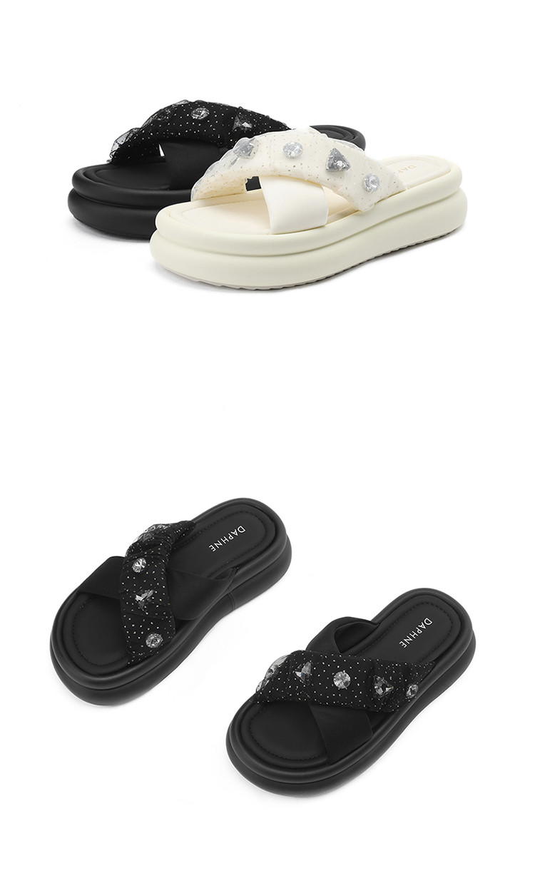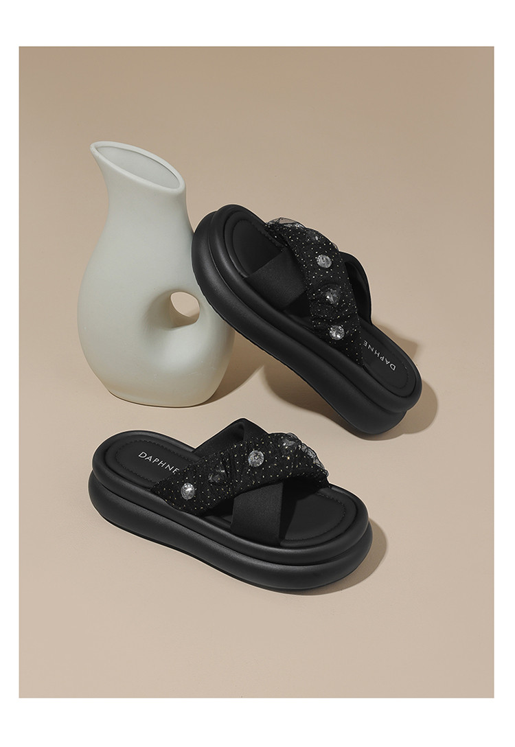 【畅销尖货】夏季外穿女拖鞋水钻网纱厚底拖鞋时尚休闲沙滩拖鞋 589271