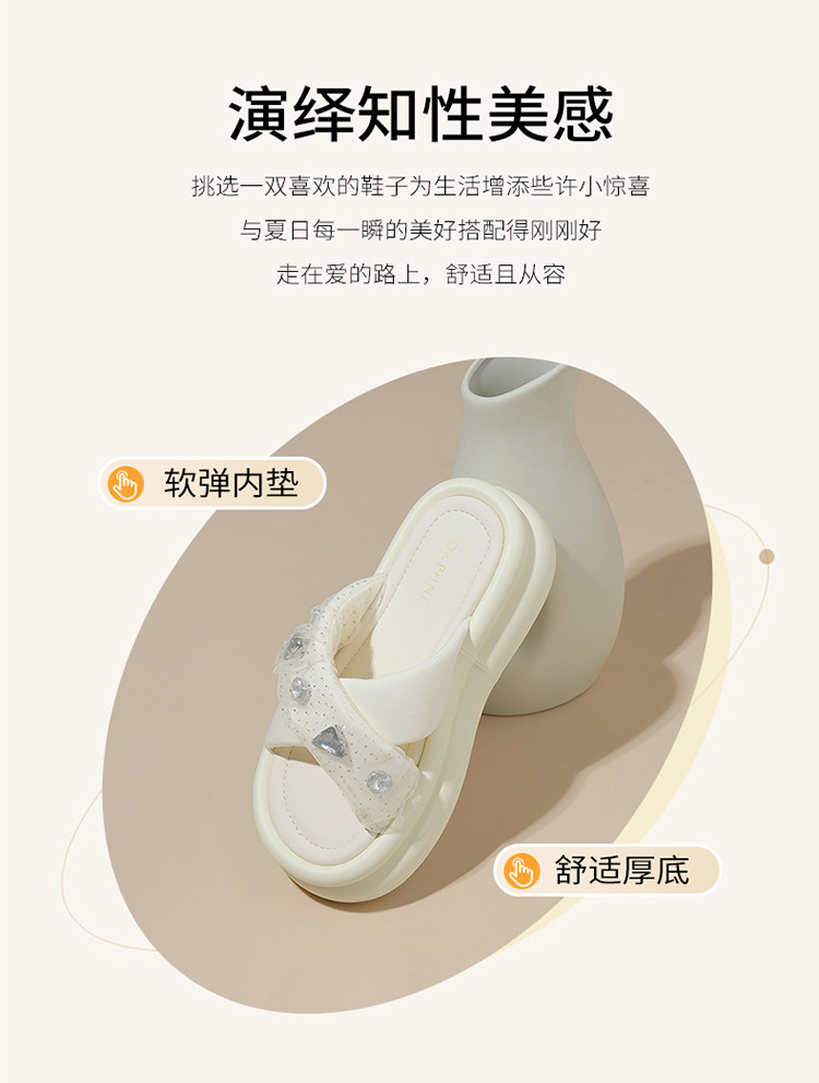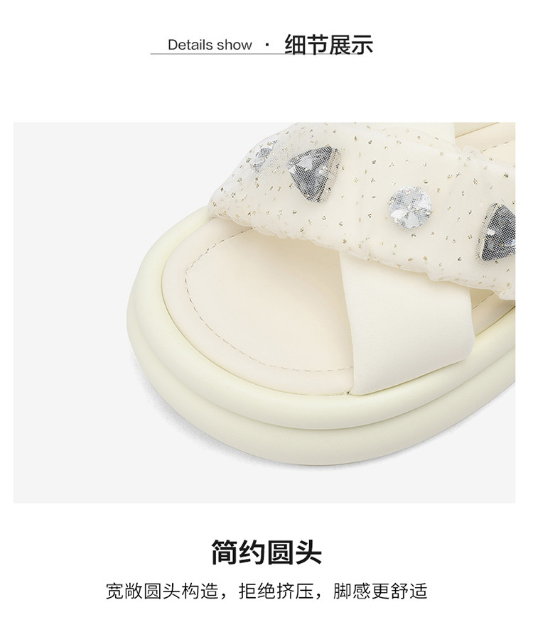 商品名称:【畅销尖货】夏季外穿女拖鞋水钻网纱厚底拖鞋时尚休闲沙滩拖鞋 589271