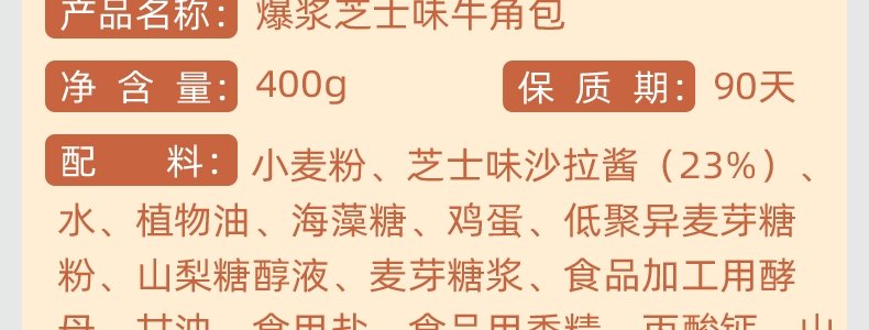 商品名称:卡尔顿(Calleton)爆浆芝士味牛角包 400g