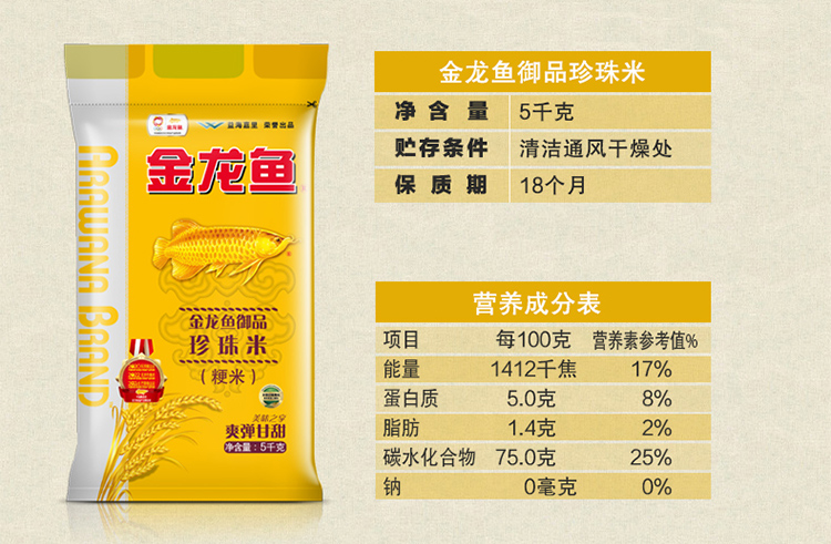 商品名称:【京东/德邦配送】金龙鱼御品珍珠米5kg