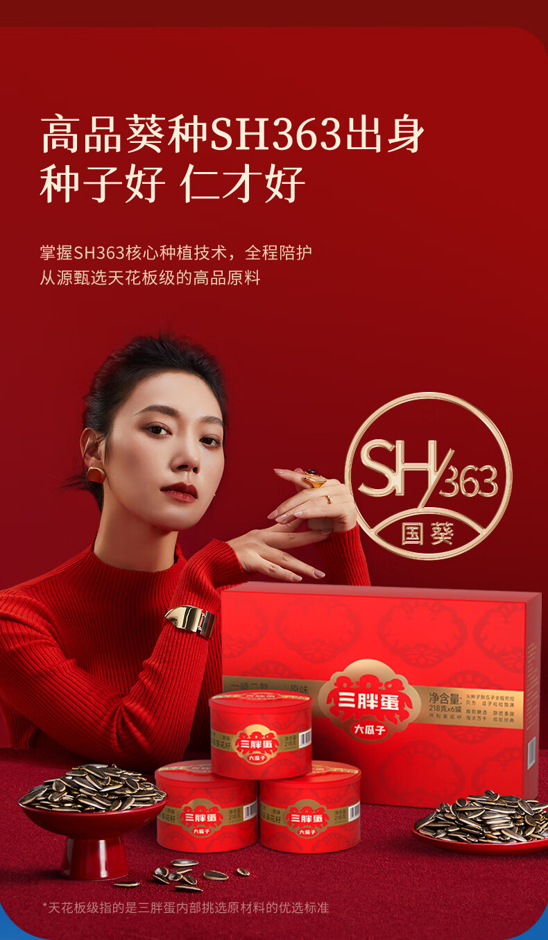 【京东/顺丰配送】三胖蛋原味瓜子礼盒218g*6罐