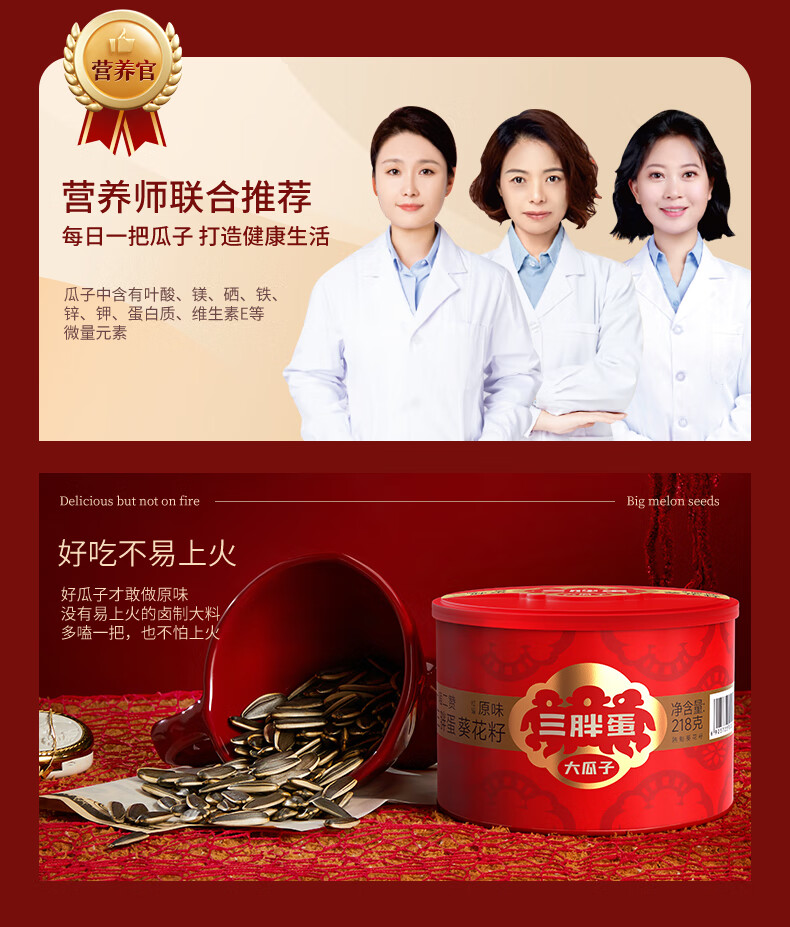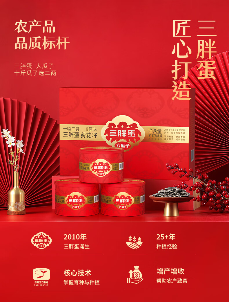 商品名称:【京东/顺丰配送】三胖蛋原味瓜子礼盒218g*6罐