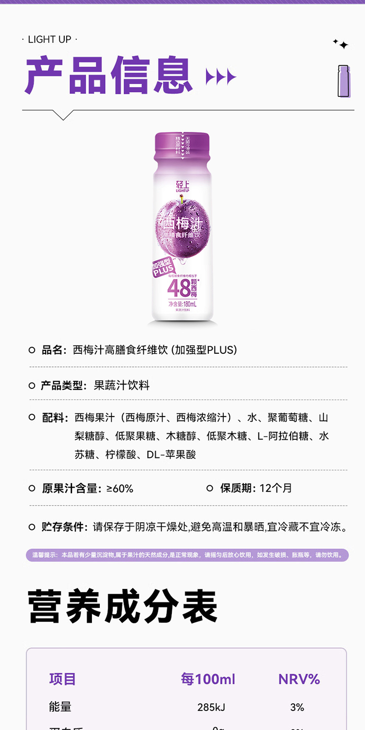 商品名称:轻上加强型西梅汁180ml*6瓶