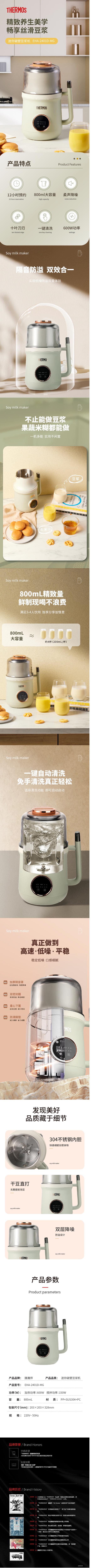 商品名称:THERMOS/膳魔师800毫升迷你破壁豆浆机EHA-2401D-MG