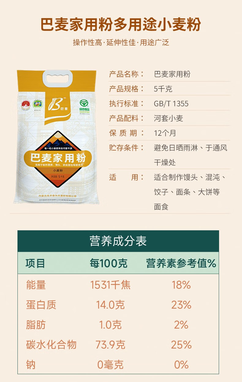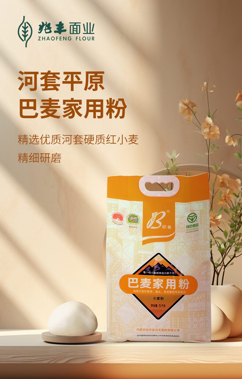 商品名称:【京东/顺丰配送】兆丰内蒙古河套平原巴麦家用小麦粉5kg