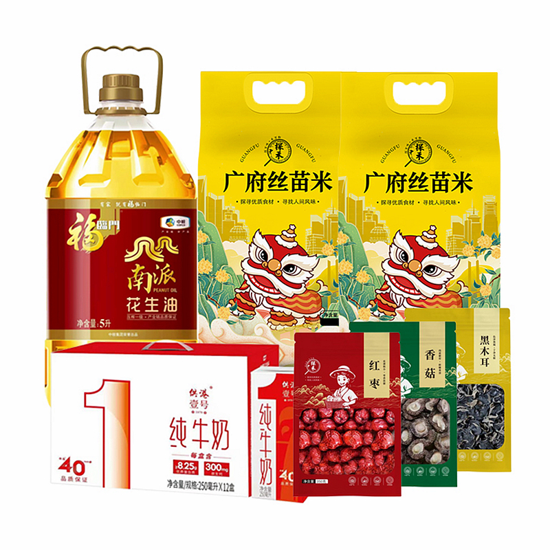 商品名称:【京东/德邦配送】中粮福临门探禾供港壹号粮油牛奶干货组合10.62kg+8L