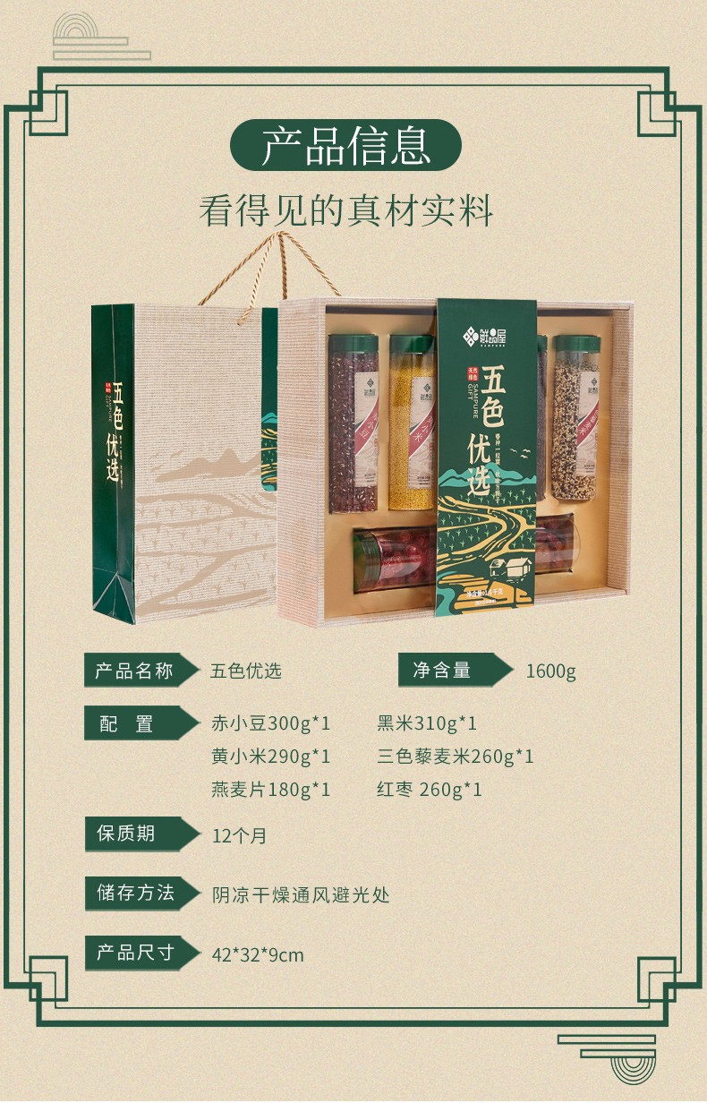 商品名称:鲜品屋五色优选杂粮礼盒1600g