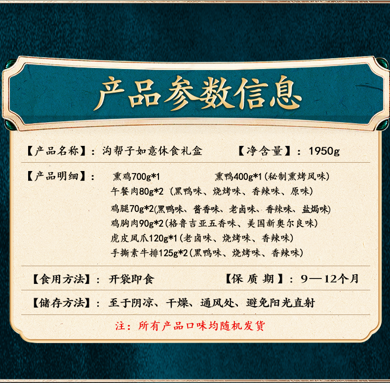 商品名称:【京东/顺丰配送】沟帮子如意休闲熟食礼盒1950g