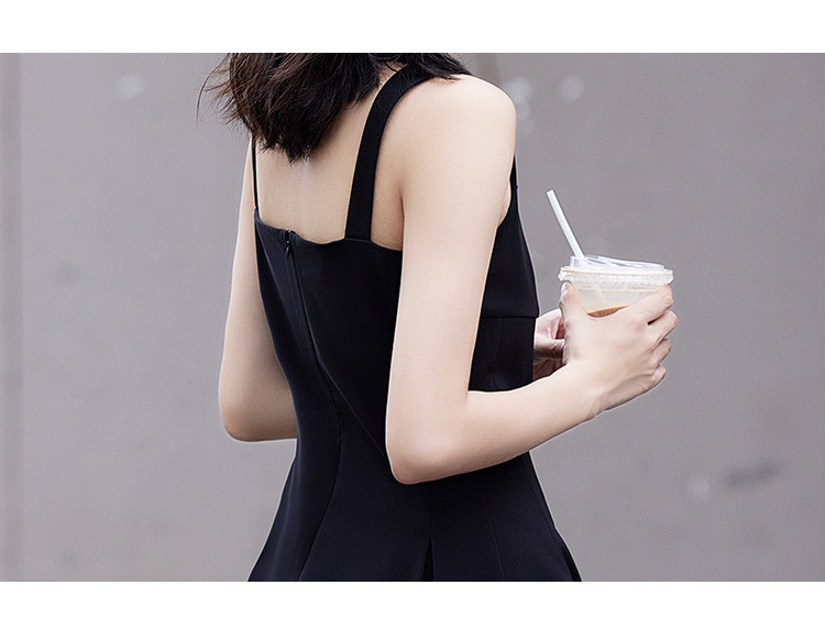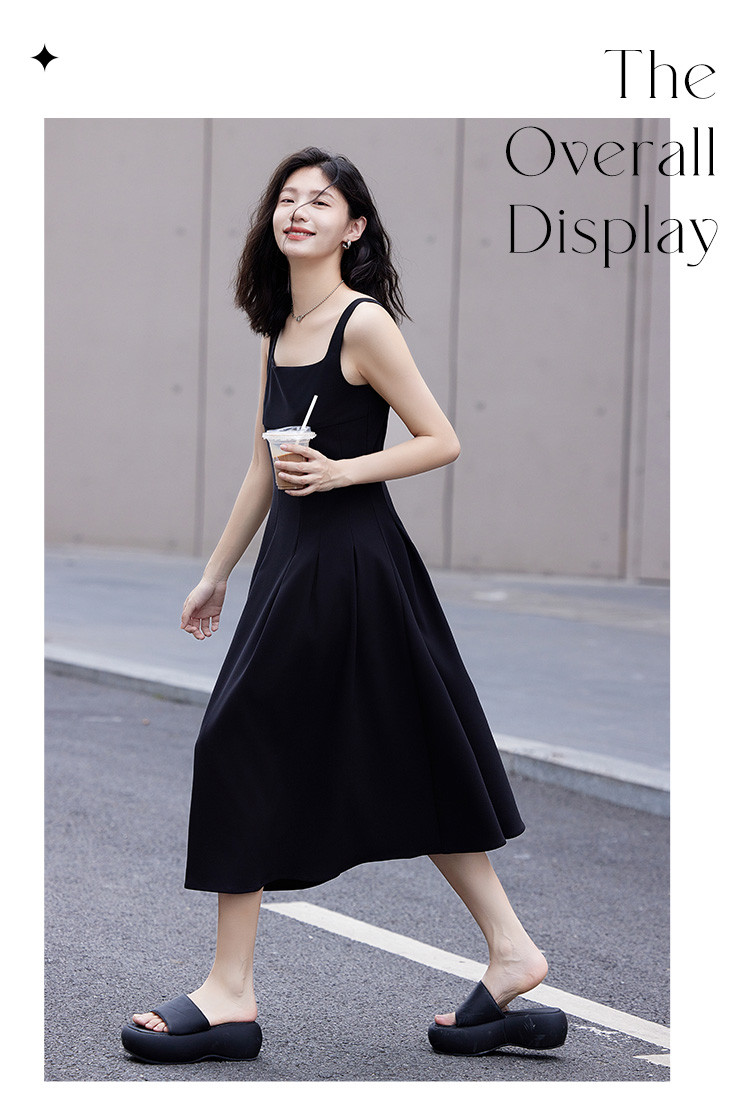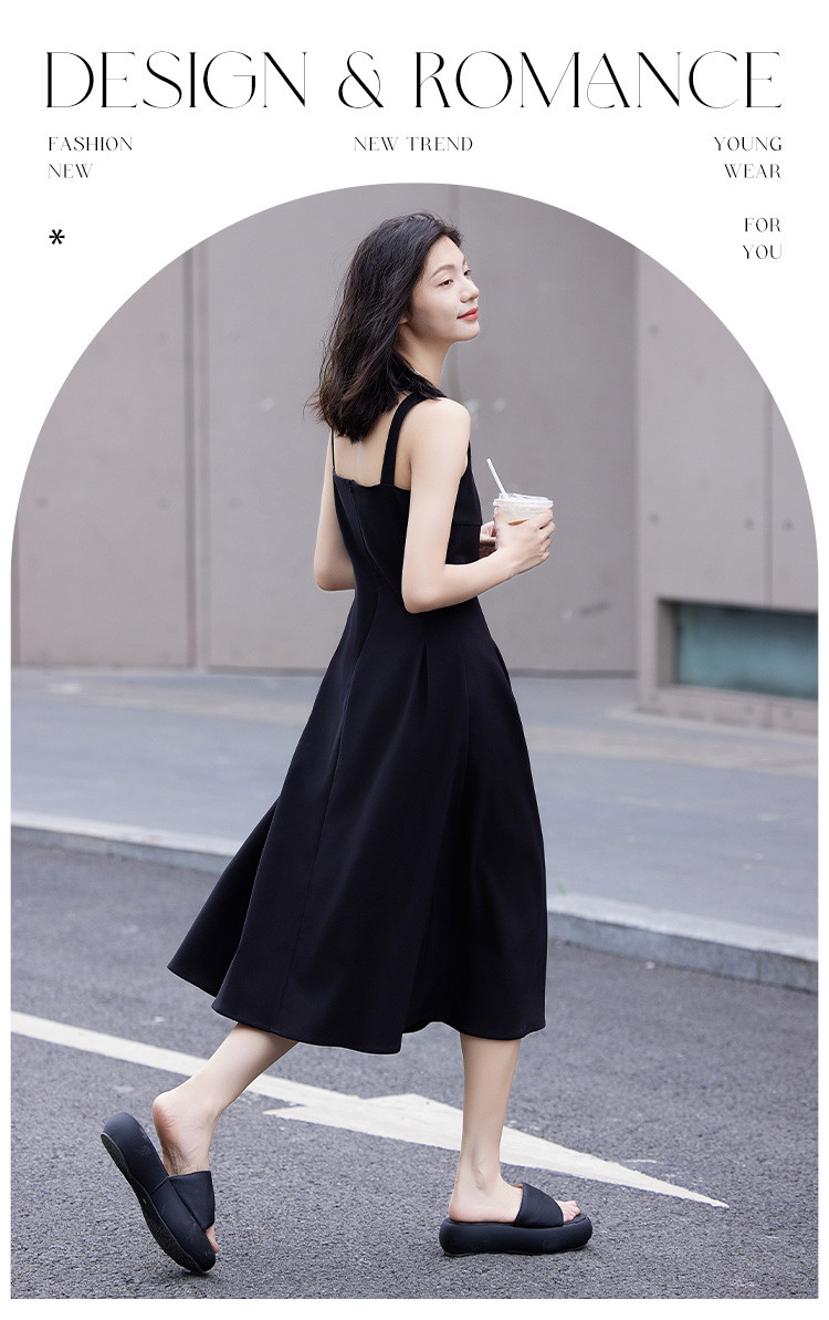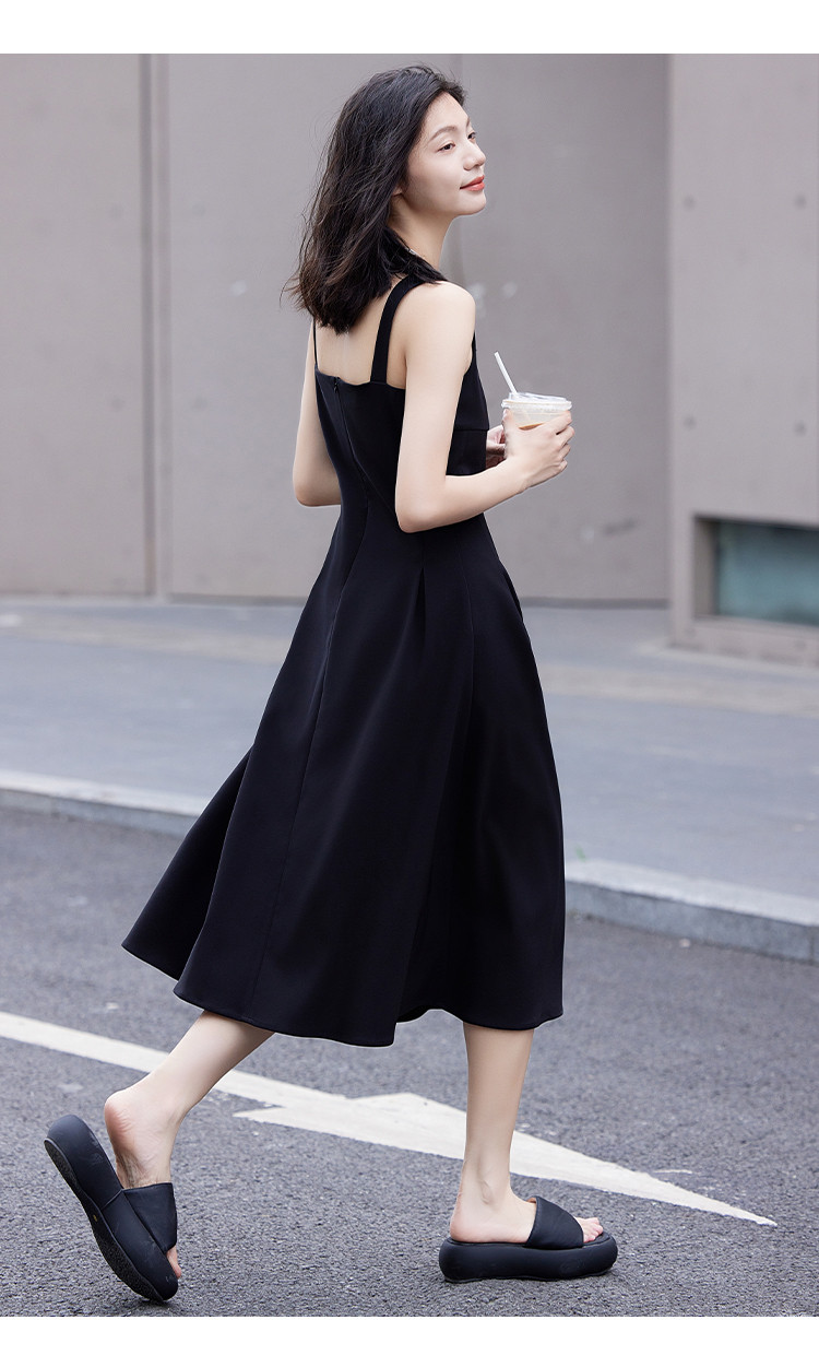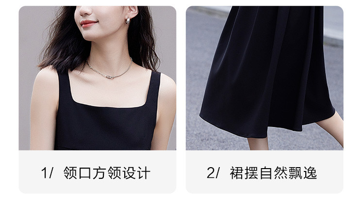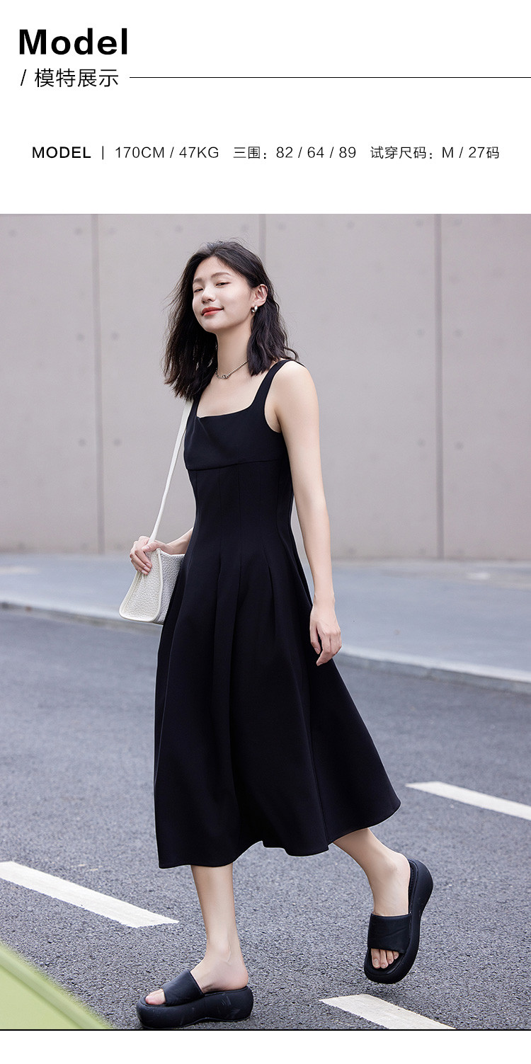 商品名称:【法式小黑裙】秋款优雅微弹感捏褶造型方领吊带连衣裙女 843330