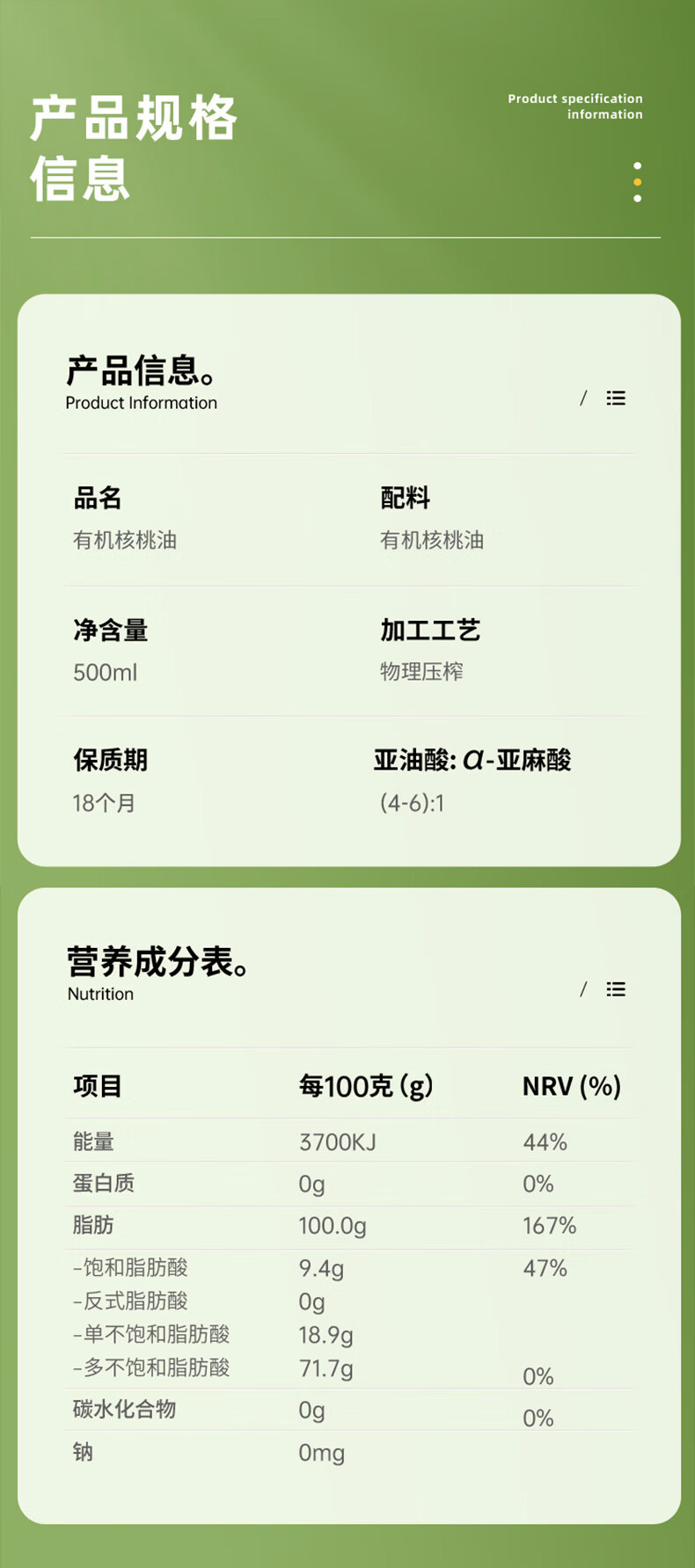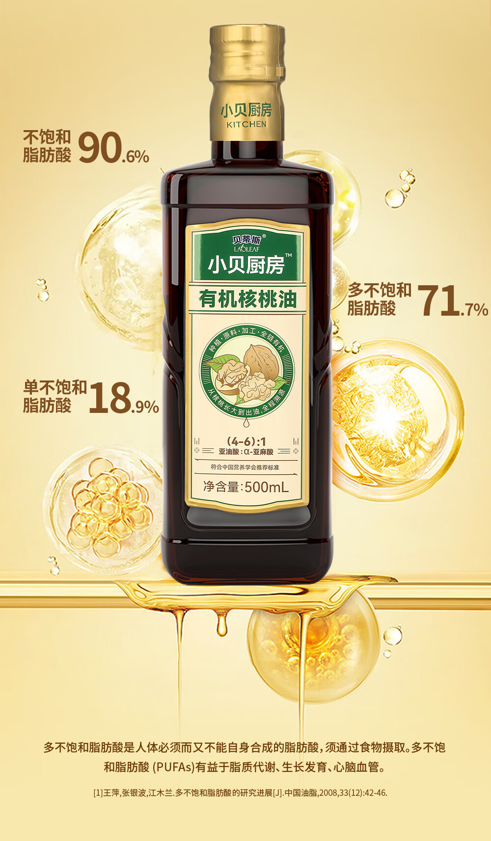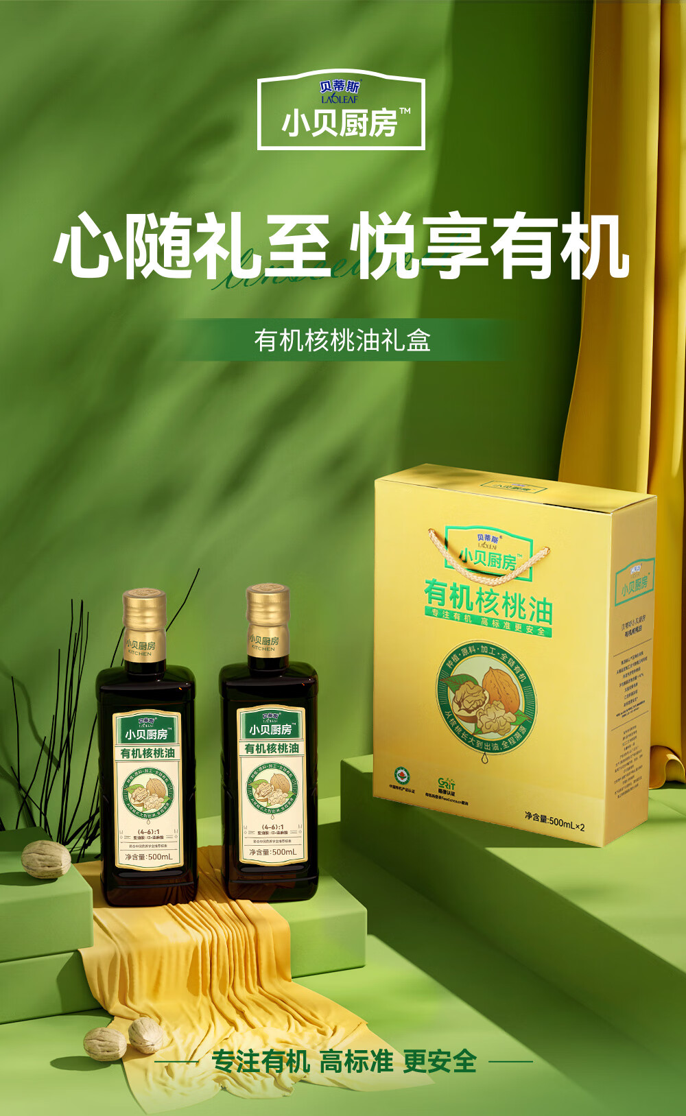 商品名称:【京东/顺丰配送】BETIS/贝蒂斯小贝厨房有机核桃油礼盒500ml*2瓶
