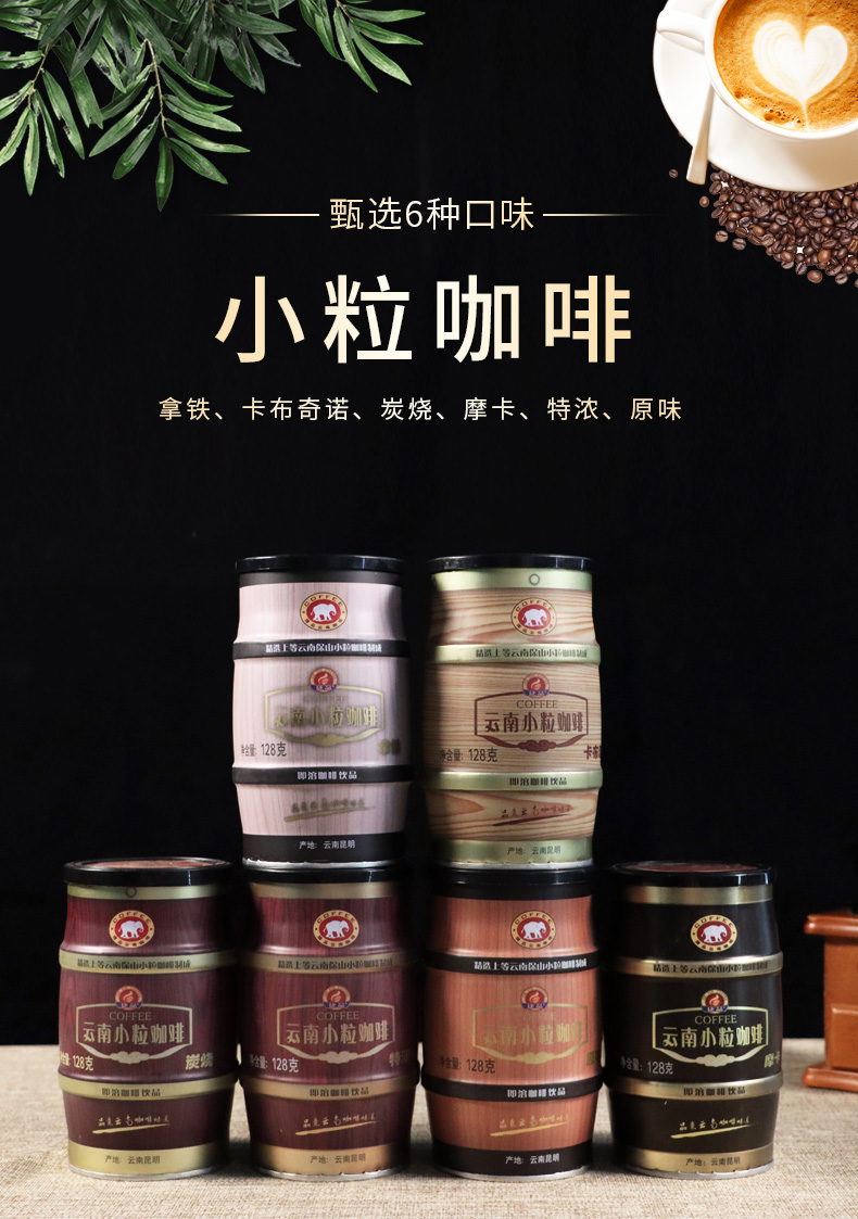 商品名称:七彩基地云南小粒咖啡罐装128g/罐