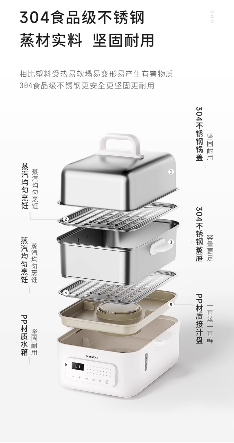 Glasslock/盖朗15升不锈钢电蒸锅GE-STO1GY