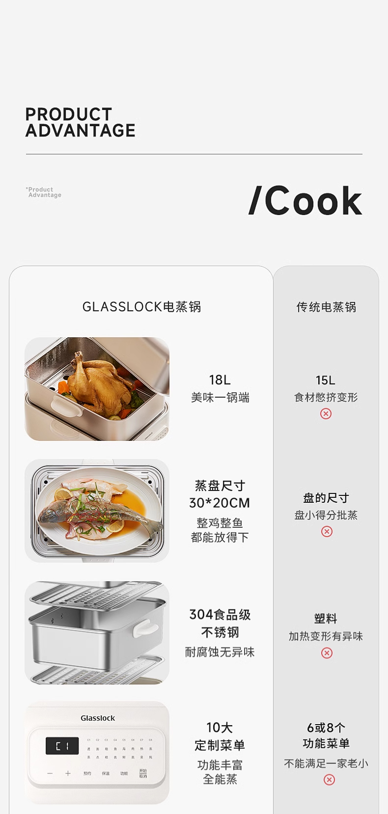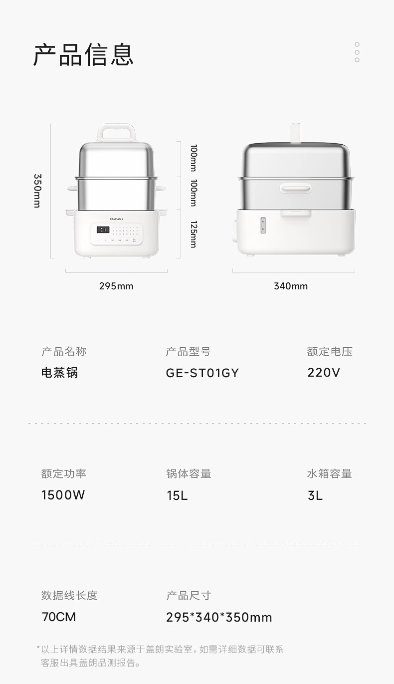 商品名称:Glasslock/盖朗15升不锈钢电蒸锅GE-STO1GY