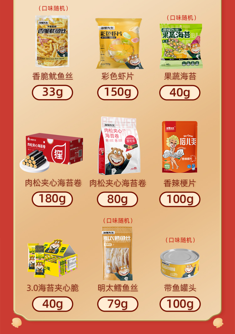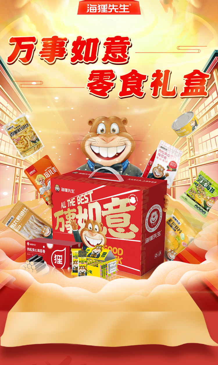 商品名称:【京东/顺丰配送】海狸先生万事如意海味休闲零食礼盒802g