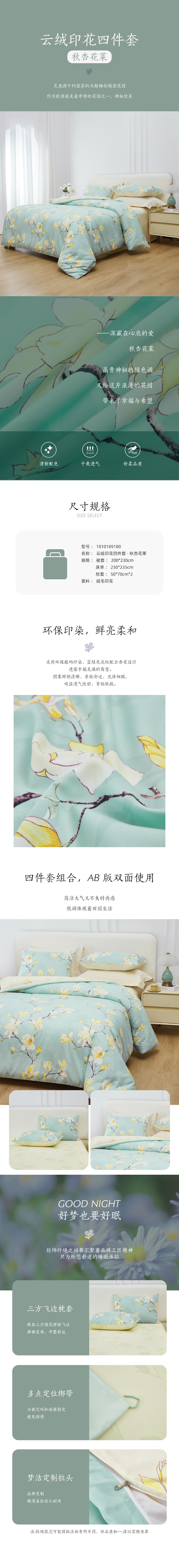 商品名称:梦洁秋杏花莱云绒印花四件套200*230cm