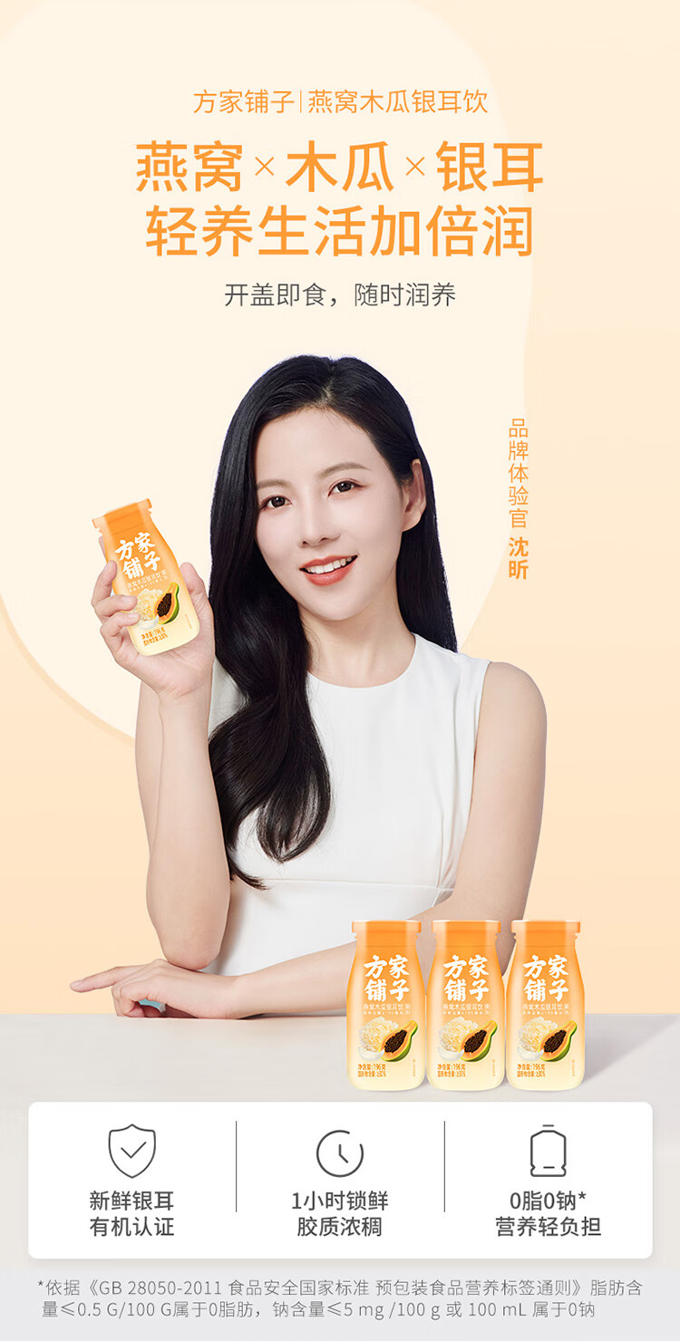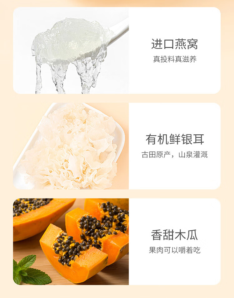 商品名称:方家铺子燕窝木瓜银耳饮整箱196g*6瓶