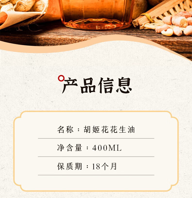 商品名称:【京东/顺丰配送】胡姬花古法小榨花生油礼盒400ml*6瓶