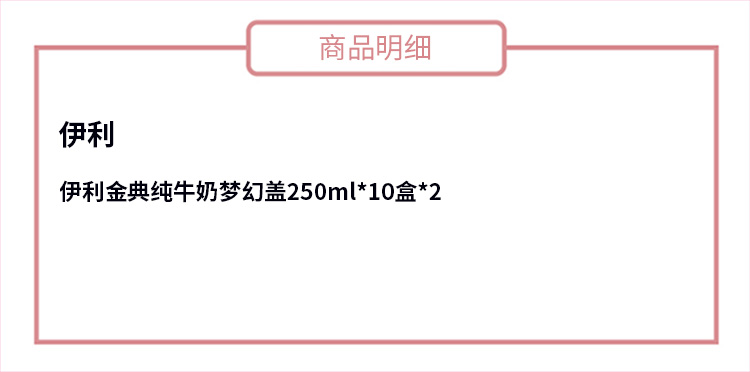 商品名称:伊利金典纯牛奶梦幻盖250ml*10盒*2提