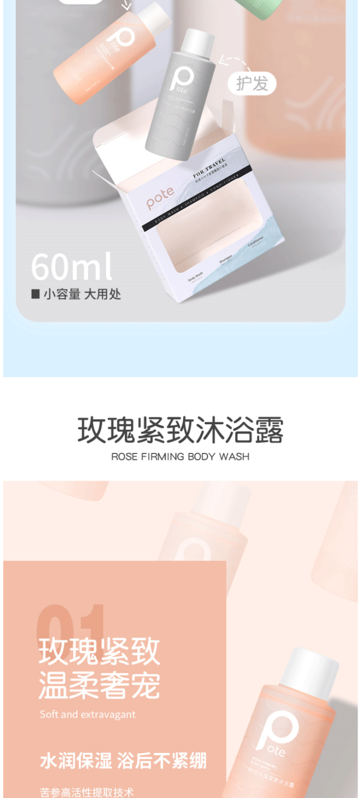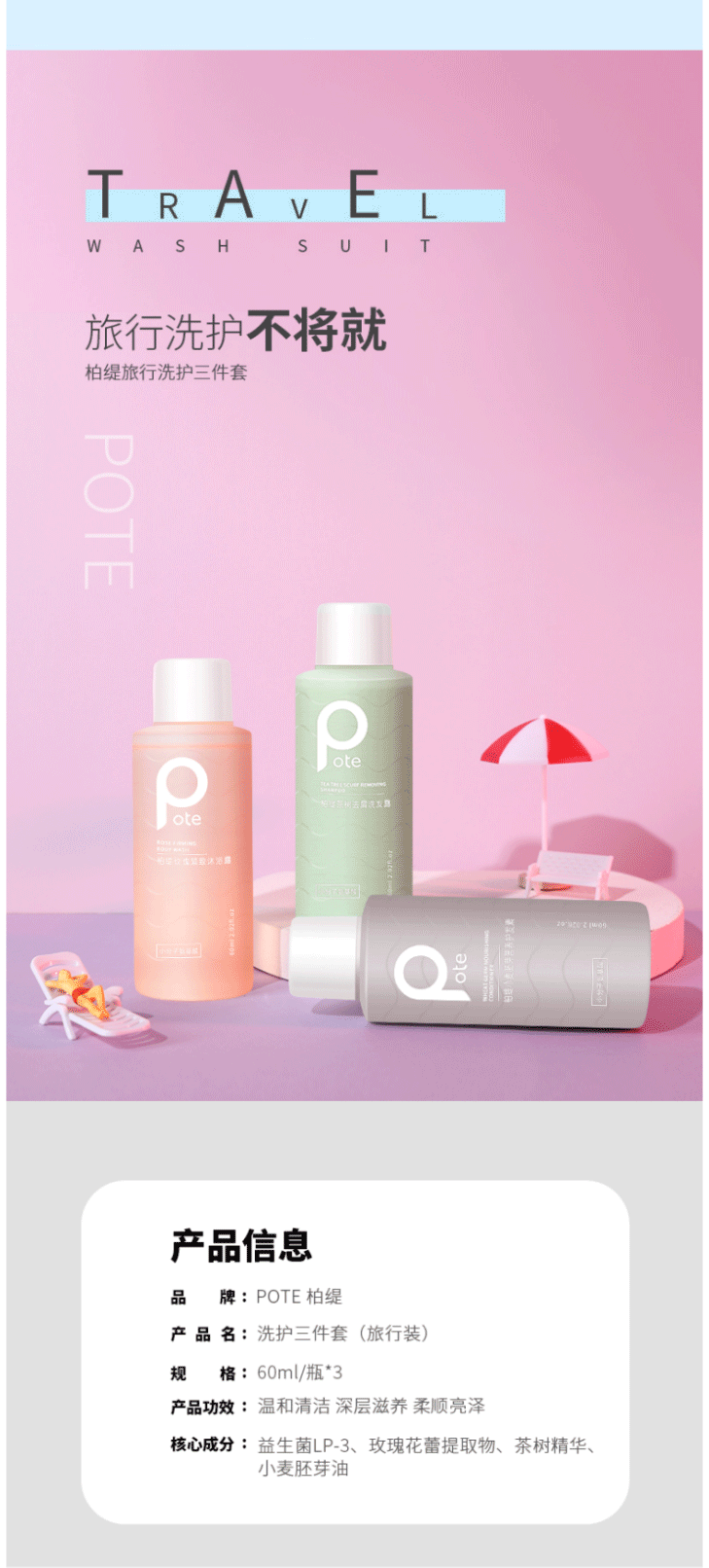 商品名称:POTE/柏缇小分子氨基酸洗沐护套装60ml*3瓶